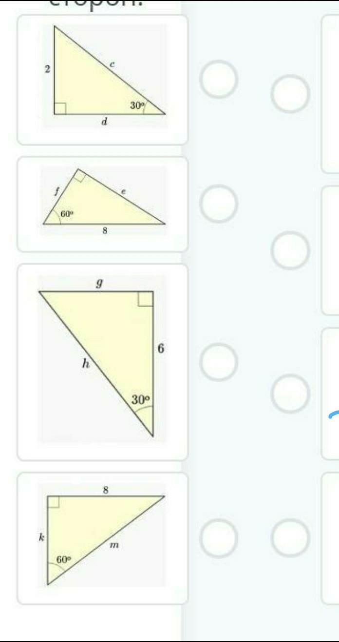 1) имеем угол в 30°, следовательно с = 2 × 2 = 4