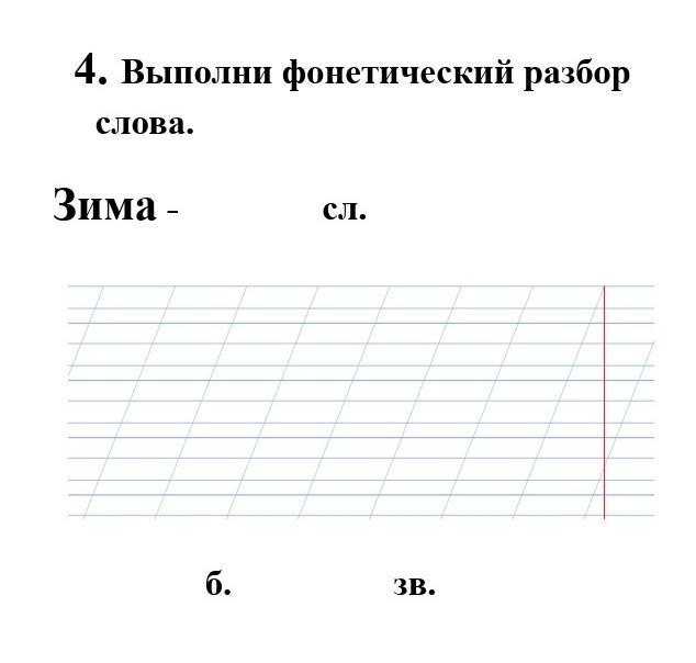 4. Выполни фонетический разбор слова. Зима - сл. б. ЗВ. помогите пожалуйста быстрее плизззз сделать задание