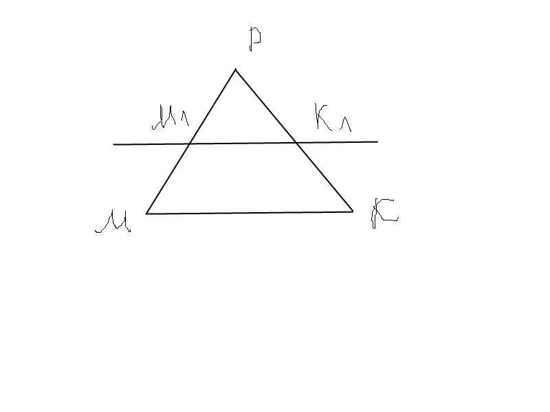 Дан треугольник MPK. Плоскость,параллельна прямой MK , пересекает сторону MP в точкуM1 , а сторону PK - в точке K1 . Вычислите длину отрезка M1K1 , если MK = 27 см, PK:RK1 = 9 : 5