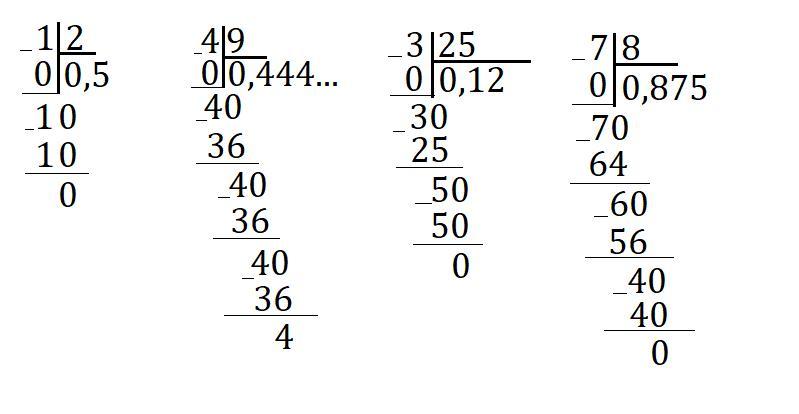 4 : 9 = 0,444...