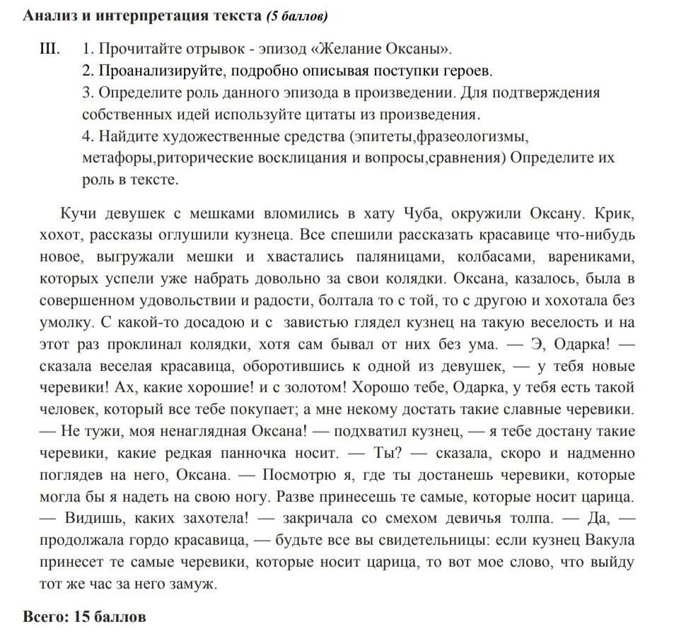 III. 1. Прочитайте отрывок - эпизод «Желание Оксаны».