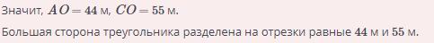 Если не грузится фото, то ответ 44 м и 55 м.