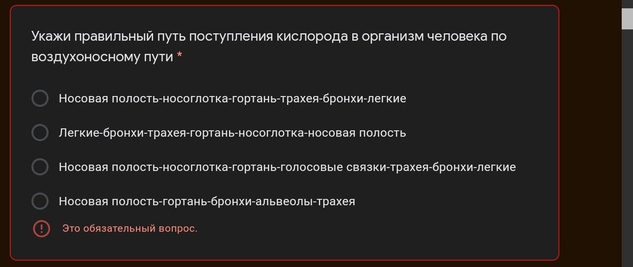 Укажи правильный путь поступления кислорода в организм человека по воздухоносному пути *