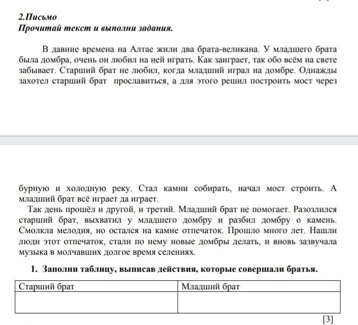 Ответ: Старший брат - Не любил ,когда младший брат играет на домбре,решил прославиться построив мост, стал собирать камни и строить мост,разозлился и разбил домбру о камень