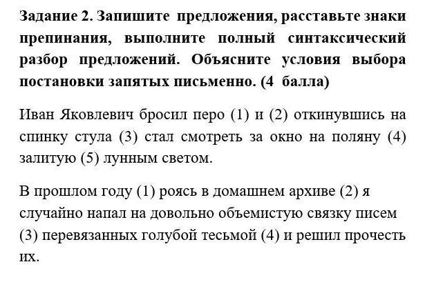 Иван Яковлевич(подлеж) бросил(сказ) перо(дополнение) и, откинувшись на спинку стула(деепр об), стал смотреть(скаж) за окно(дополнение) на поляну(обстоятельство), залитую лунным светом(причастный об).