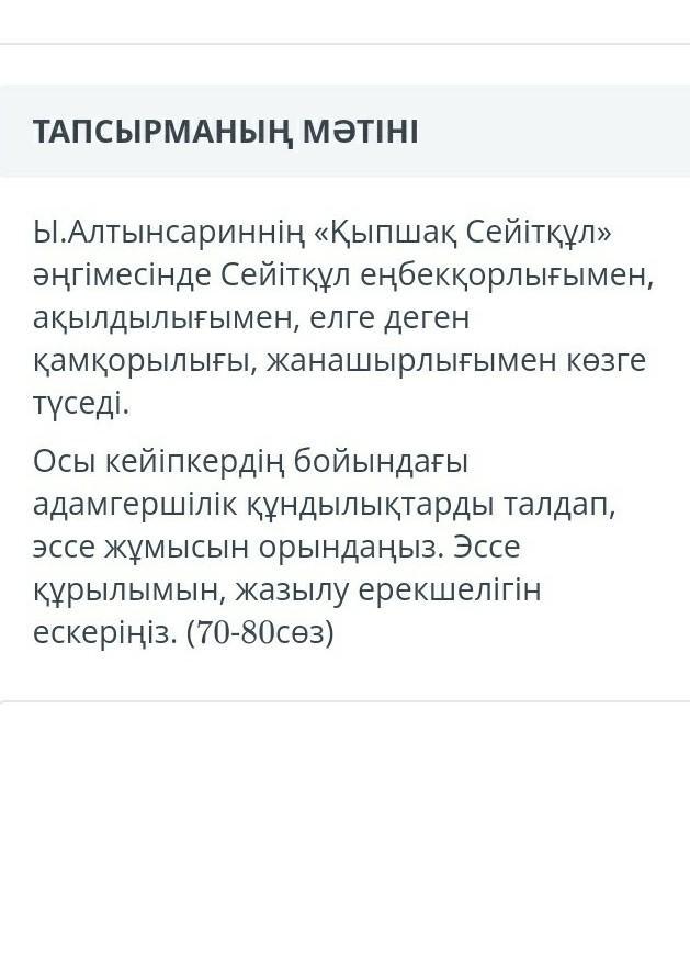 Ответ:Қыпшақ Сейітқұл отыз үйлі тобрымен, жұрттың тегіс аттаныс барымтасы бар уақытта, бұл отыз үй кедейді қалайынша етсем байытып, халық қатарына қосамын деп ойға қалды. Сауда етуге мал жоқ, барымтамен мал алсам, бір күндерде жау да бізден қуып алады, ақырында бұрынғылардың айтып кетуінше, жортуыл басы жолда қалса керек. Соның бәрін де шамалап қарап, ақыр бір қыялға түсіп, Сейітқұл әуелі мекен еткендей бір орын іздеді. Көп жерлерді кезіп жүріп, ақырында Торғай төресіндегі Қабырға деген өзен-судың бойына тоқтады. Мына жақта Үргеніш, Қоқаннан, мына жақта қалмақтан шетірек және жаманшылық болса, қалың Қыпшақ деген руға жақынырақ екен деп, сол жерді ұнатып қайтқан соң, қысты өткізіп, жаздың жылы уақытында кедейлерді жалаңаш-жалпы көшіріп, Қабырға бойына алып келді. Сейітқұлдың бір ағасы бар еді, жол жүріп, ұрлық, барымтаны әдет еткен; інісінің қанша айтқан ақылына болмай, үш-төрт үймен жалғыз-ақ сол көшпей, ескі орны Түркістан жағында қалды.