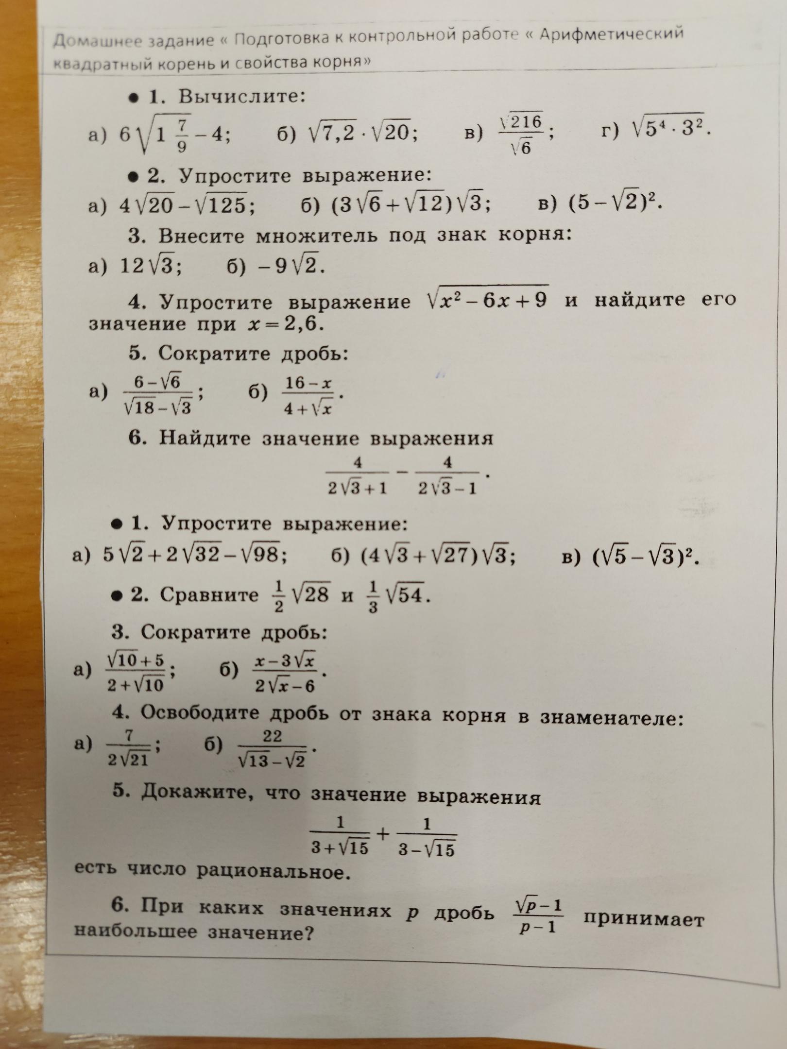6√1 7/9 - 4 = 6√16/9 - 4 = 6 * 4/3 - 4 = 24/3 - 4 = 8-4 = 4