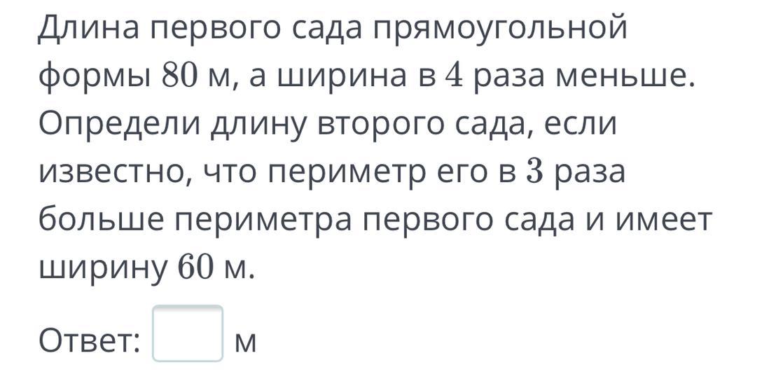 1) 80:4=20 (м) - ширина первого сада