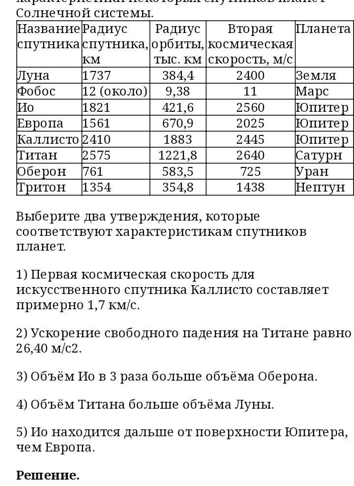 СРОЧНОО!!!!!!!!!!!!!!!!!Вторая космическая скорость для Европы равна 2040м/с, а для Ганимеда 1896 м/с. Чему равно отношение первых космических скоростей этих спутников? ( Показать решение)