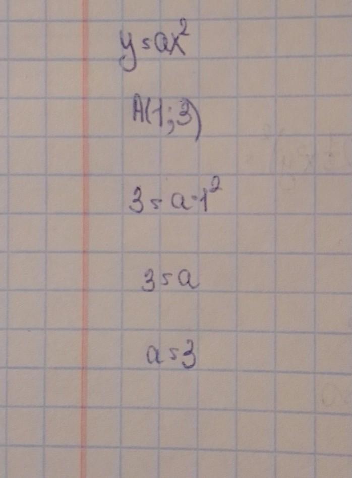 Найдите значение коэффициента a, если известно, что график функции y=ax^2 проходит через точку с координатами А(1;3)