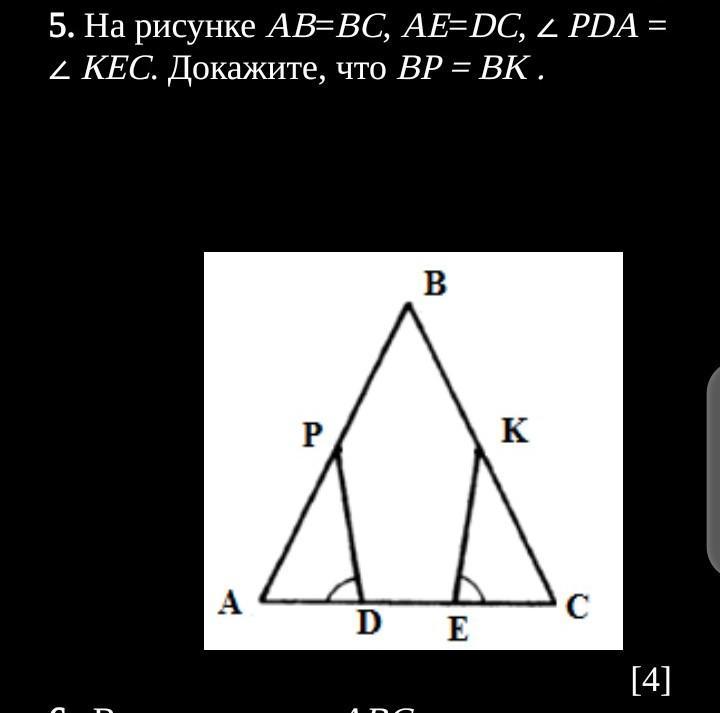 На рисунке АВ=ВС, АЕ=DC, ∠ РDА = ∠ КЕС. Докажите, что BР = ВK .