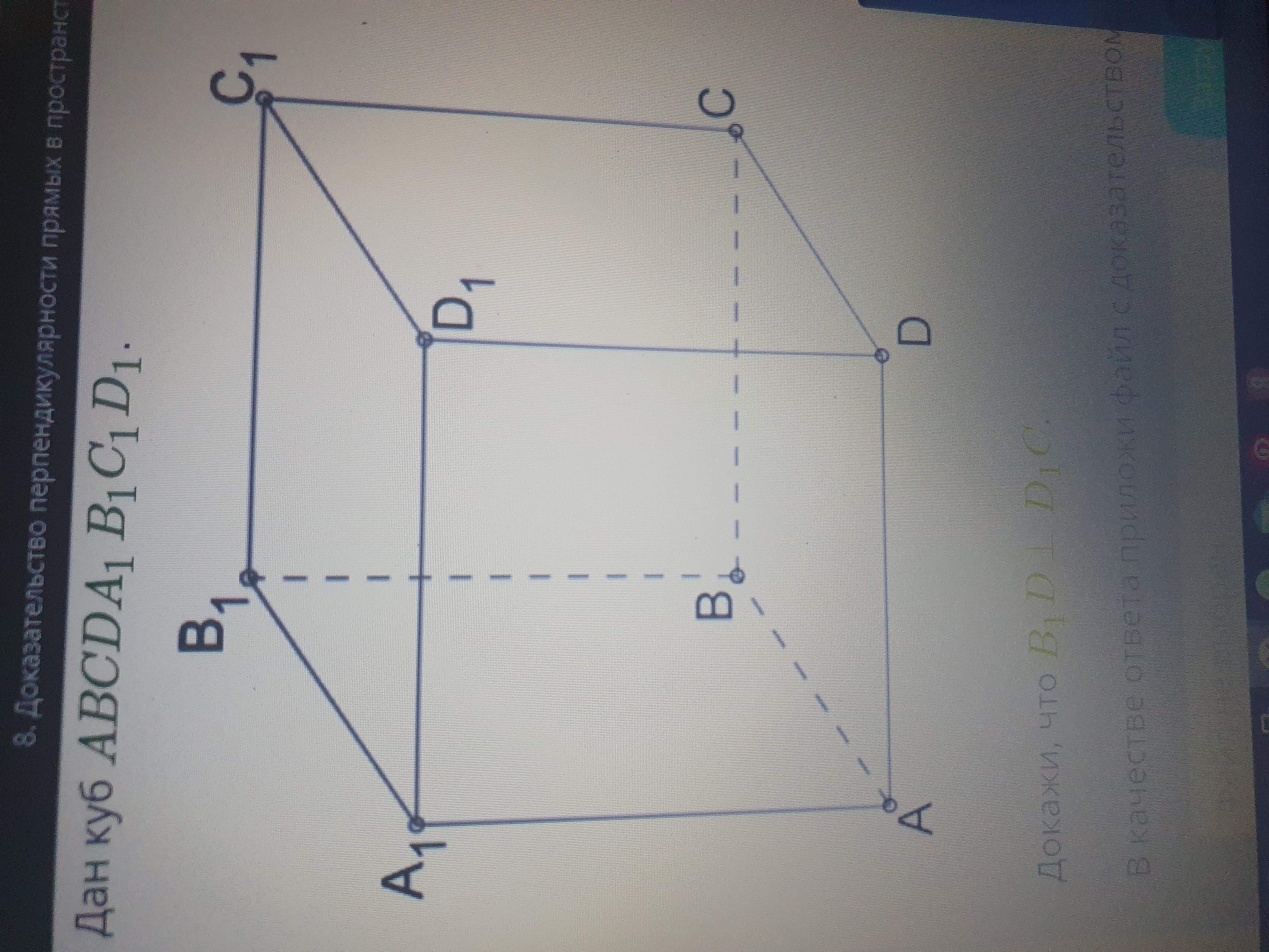Дан куб АВСDА1В1С1D1. Докажите В1D перпендикулярен D1С.