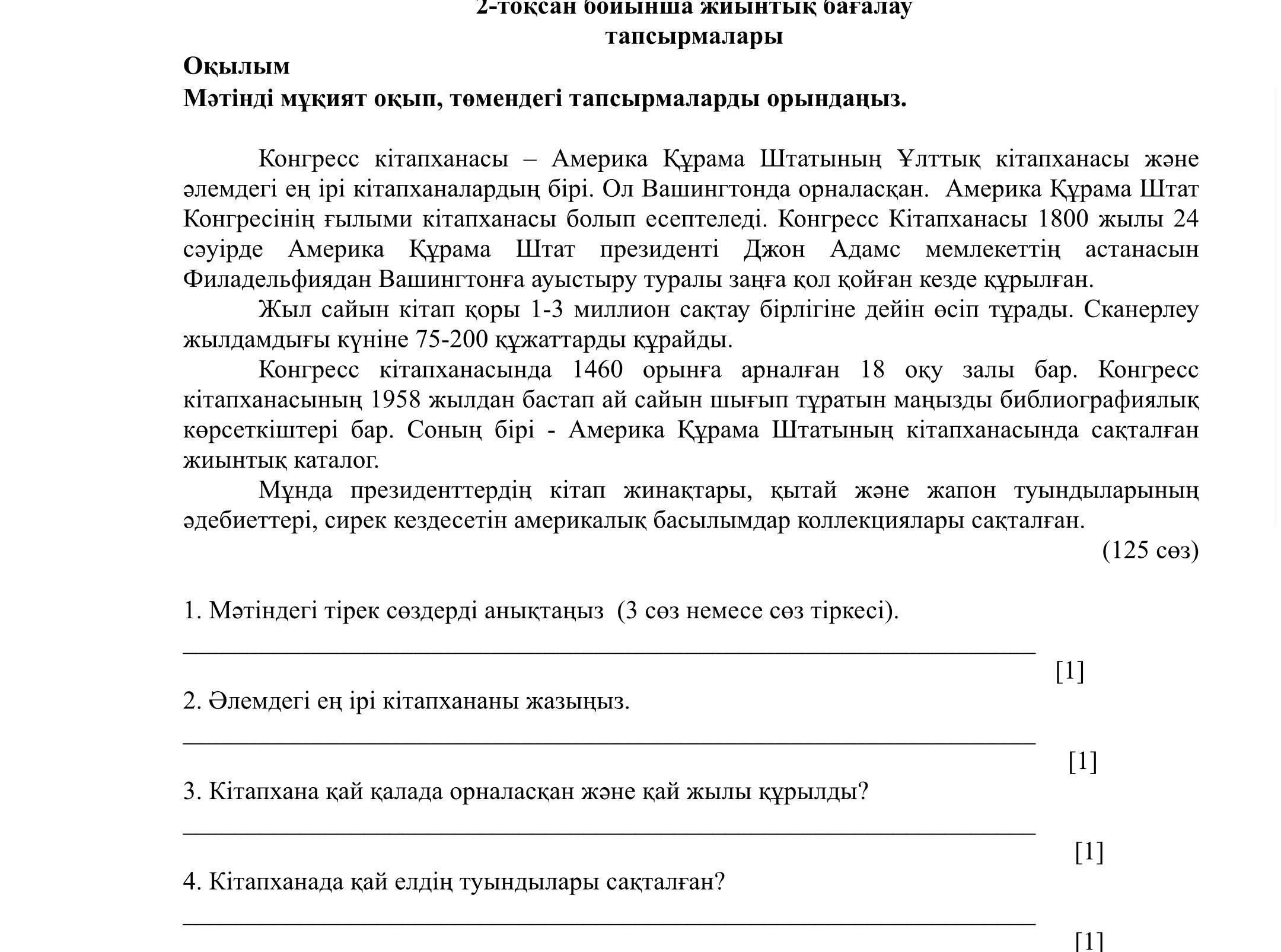 1. Мәтіндегі тірек сөздерді анықтаңыз (3 cөз немесе сөз тіркесі).