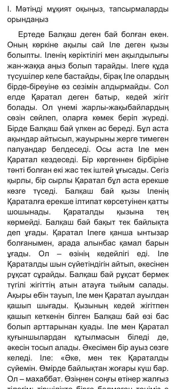 Ответ: махаббат ақшада емес или іле мен қаратал
