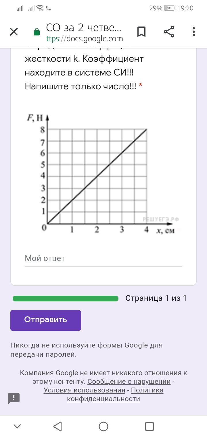 На графике показана зависимость силы упругости от удлинения пружины. Определите коэффициент жесткости k