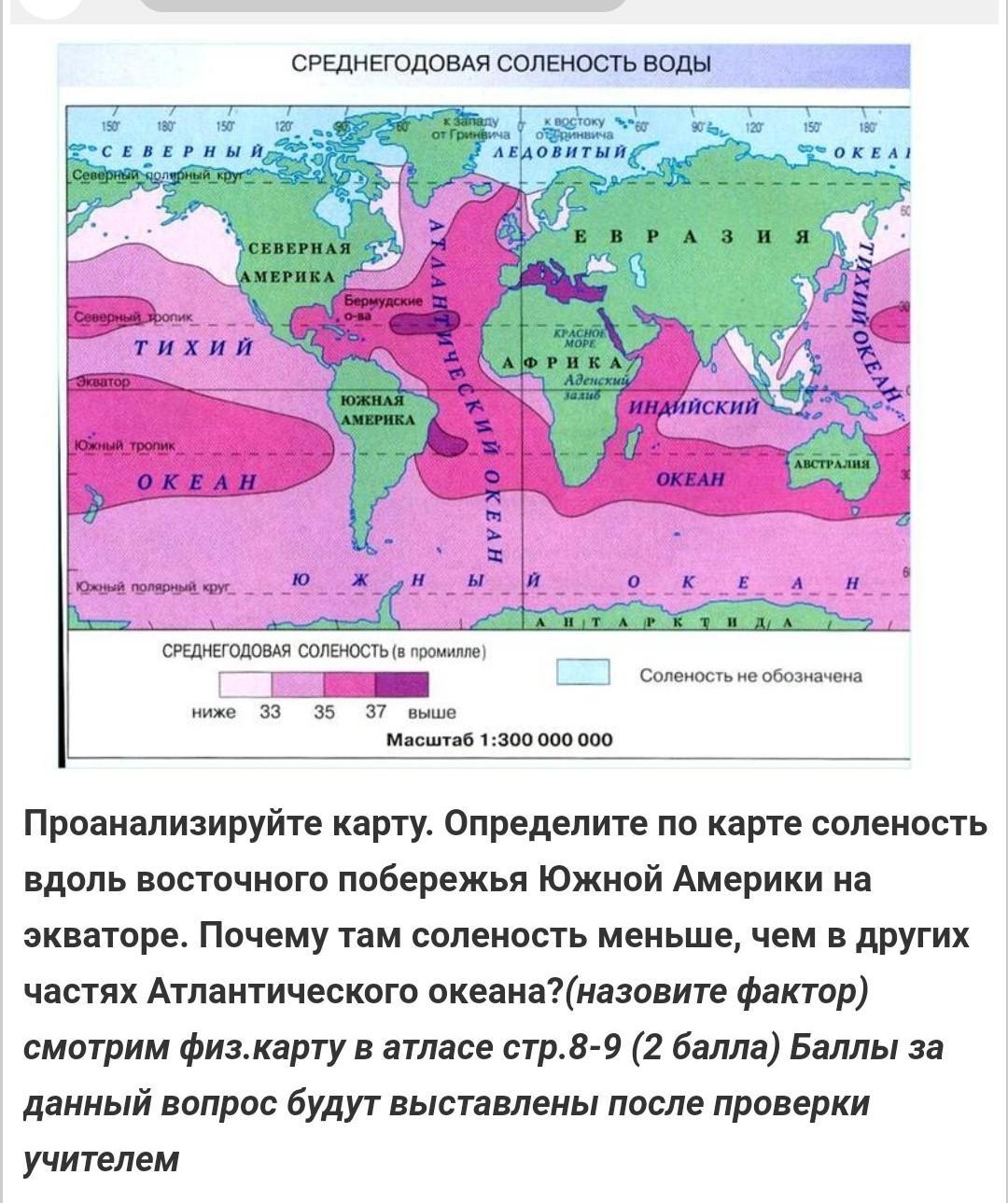 Потому что там находятся истоки рек, в том числе самой полноводное реки мира - Амазонки. Именно из-за неё в том районе океана солёность меньше чем в других частях. Ведь реки то пресные)