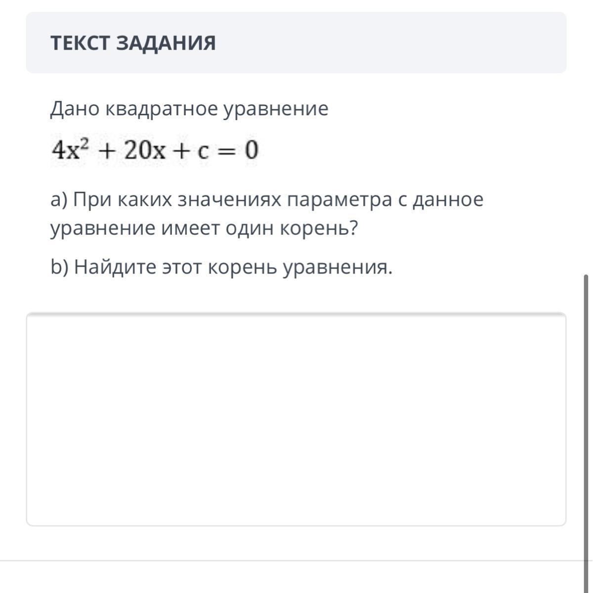 Дано квадратное уравнение 4х² + 20х + с = 0