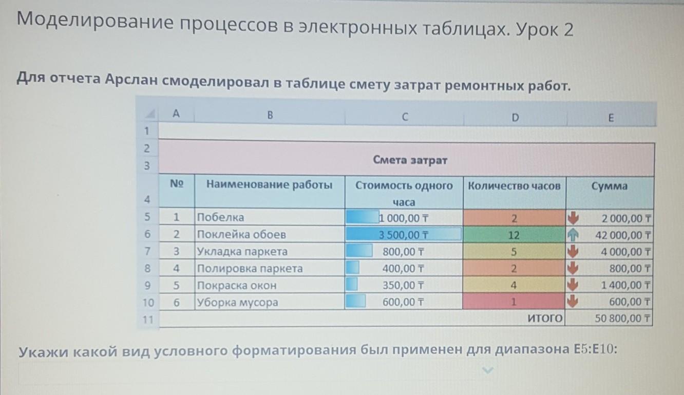 Укажи какой вид условного форматирования был применен для диапазона Е5:E10: