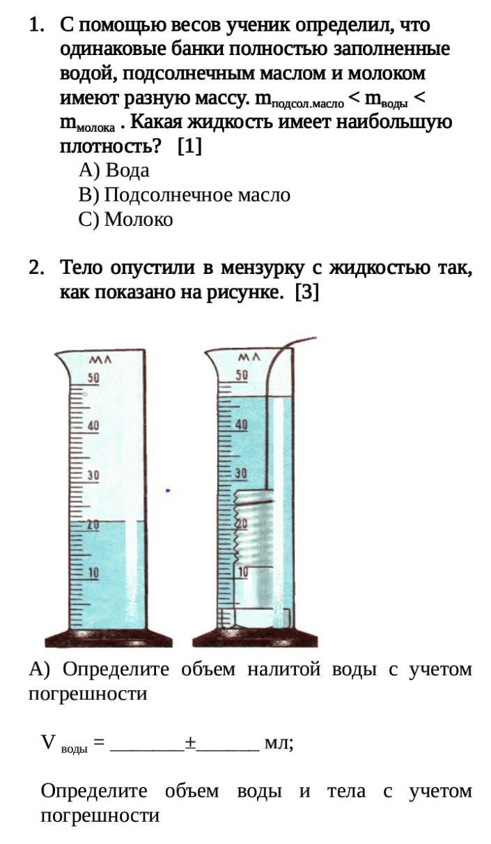 С помощью весов ученик определил, что одинаковые банки полностью заполненные водой, подсолнечным маслом и молоком имеют разную массу. mподсол.масло < mводы < mмолока . Какая жидкость имеет наибольшую плотность? [1]