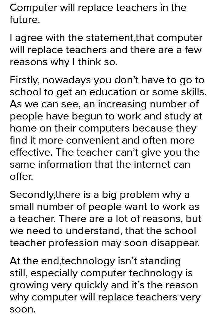 эссэ по английскому языку тема "computer replace teachers in the future "( заменит ли в будущем компьютер учителей)