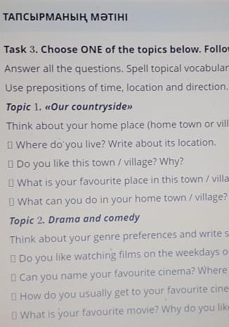 задание 3.Выбери ОДИН из топиков внизу.Ответь на вопросы,напиши текст о своем городе или деревне