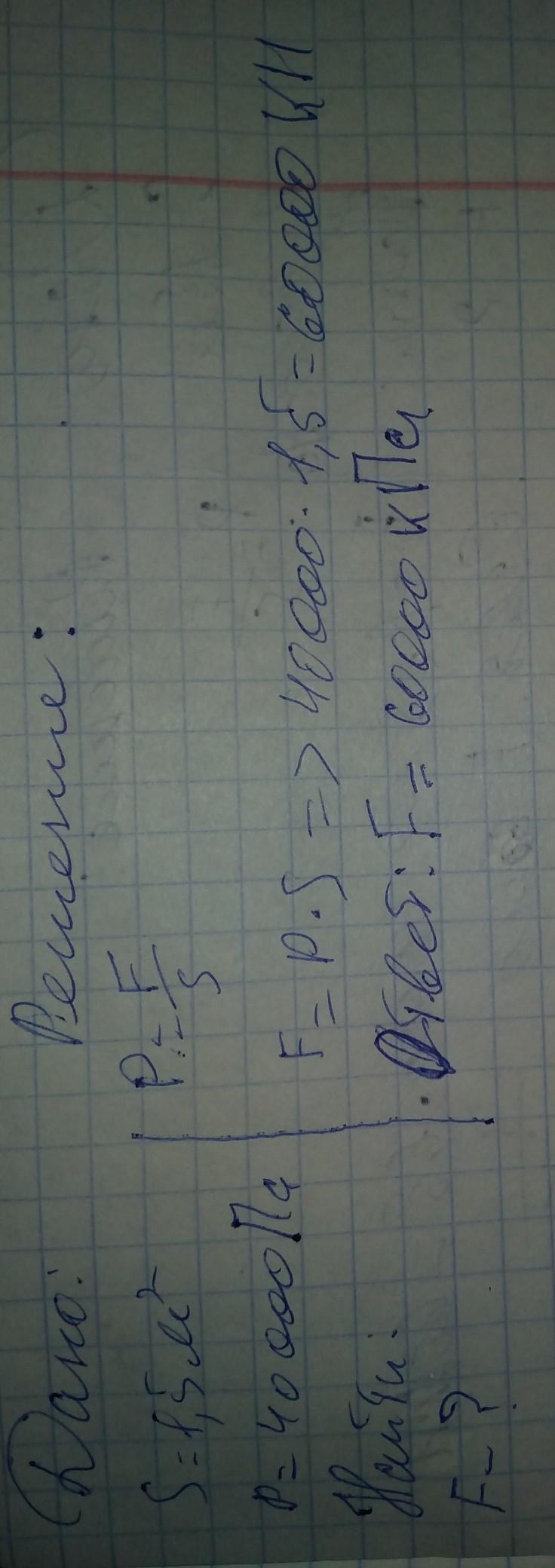 Трактор, площадь опоры обеих гусениц которого равна 1,5 м², создает давление на почву 40 000 Па. С какой силой трактор действует на почву?