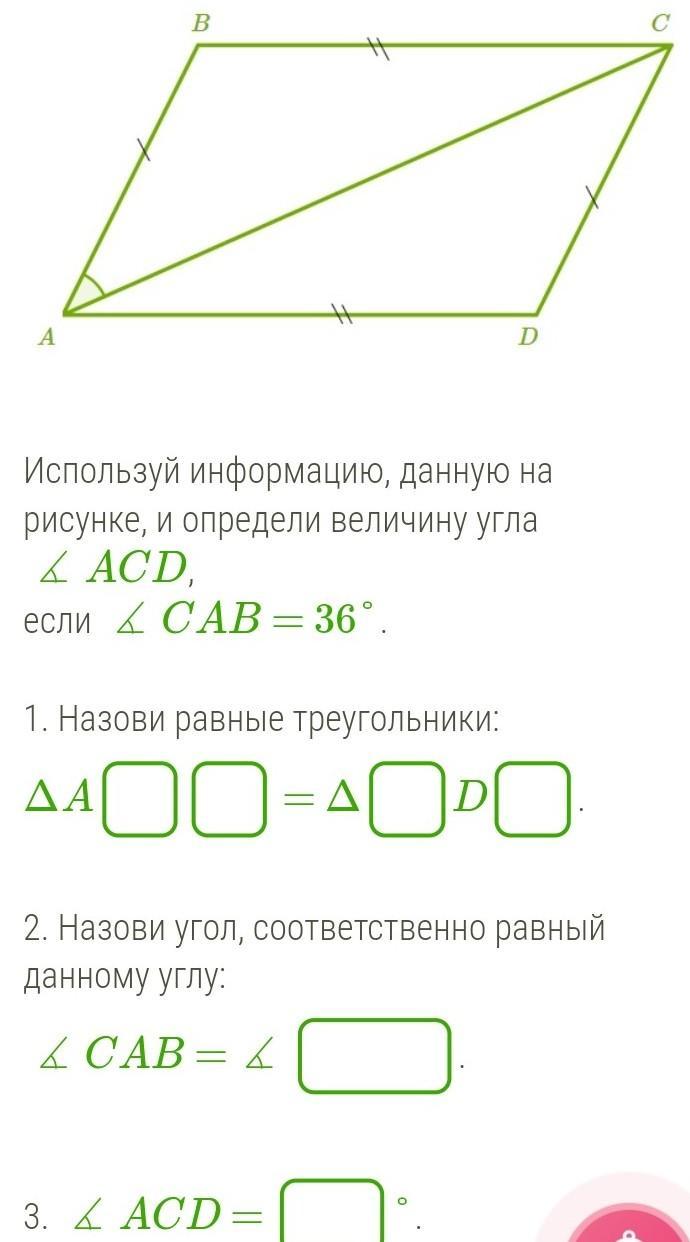 Треугольники ABC и ADC равны, так как, AB = CD, BC = AD, сторона AC - общая для двух треугольников.