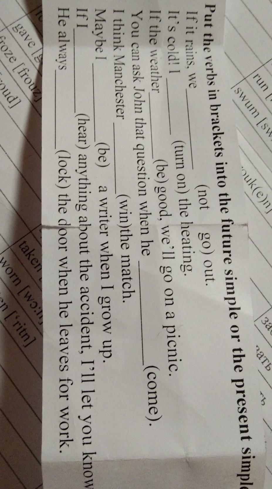 1 are not going 2 will turn on 3will be4will Come 5 would win 6will be 7will hear 8locks
