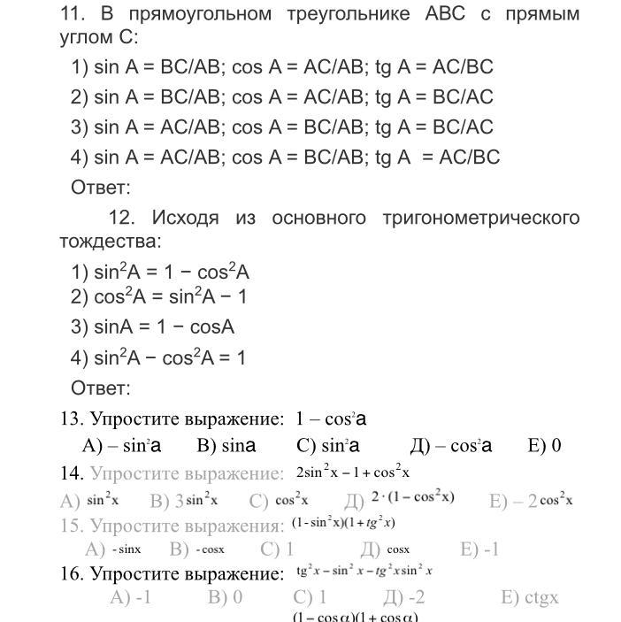 Тест по тригонометрии.