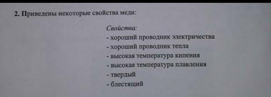 Металл красноватого цвета, температура плавления 1083°С, плотность 11,3 г/см3; очень хороший проводник тепла и электрического тока. Химические свойства. При нагревании реагирует с кислородом, серой, галогенами. Медь в ряду напряжений находится правее водорода, поэтому не реагирует с кислотами с выделением водорода.