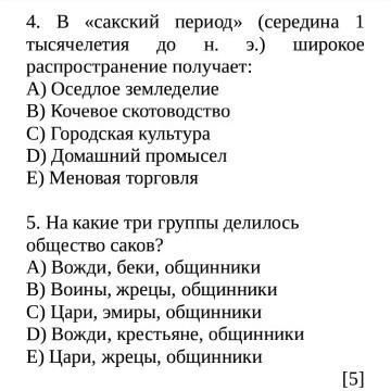 пятый вопрос ответ B ..................... а четвертый ответ городская культура