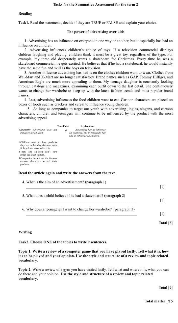 Task1.Read the statements, decide if they are TRUE or FALSE and explain your choice.