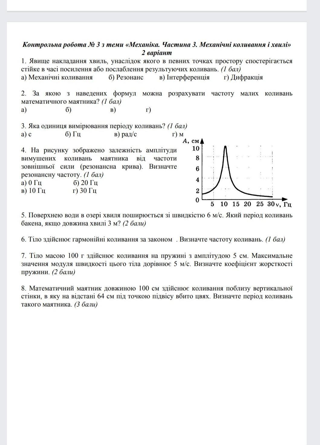 1) б 2) ? 3) а 4) в 5) 0,5 м/с 6) 20 Гц 7) 1000 Н/м 8)?