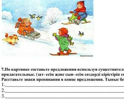 1 Пришла зима кругом засыпано земля 2 Ребята катаются на санках 3 Они хорошо отмечут Новый год!