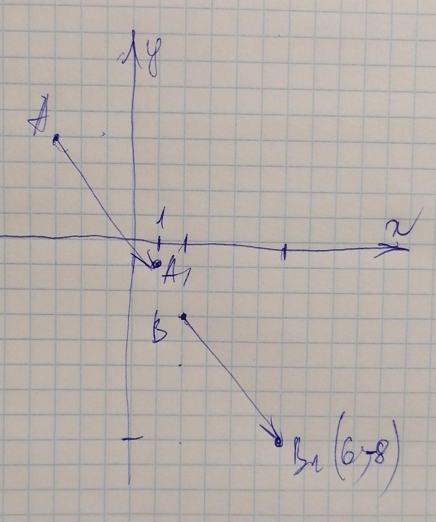 При параллельном переносе точка смещается на - 5 единичных отрезков по оси у и на 4 единичных отрезка по оси х.