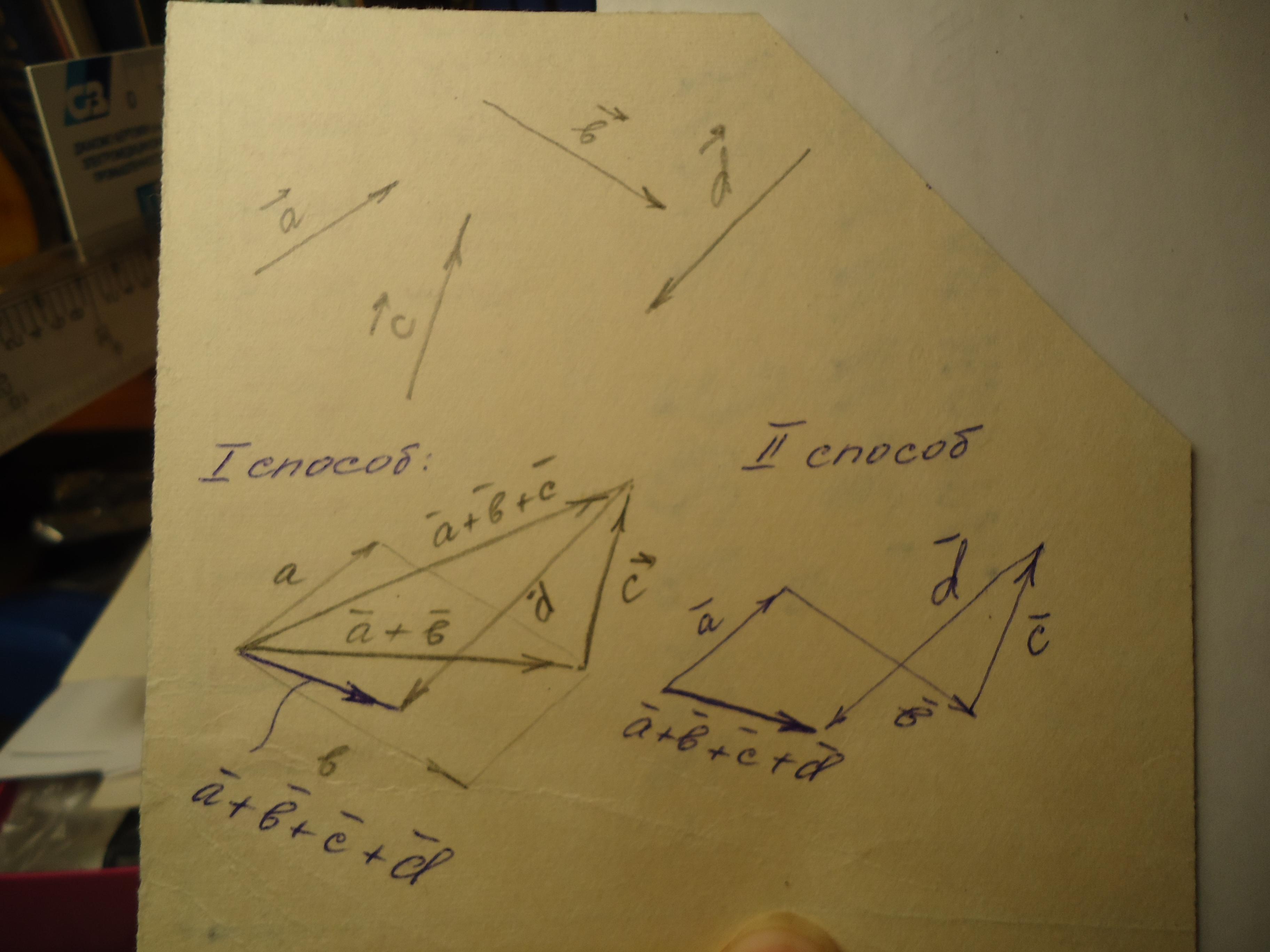 На рис. 2 я все векторы расположила друг за другом, и получила тоже самое. Но второй способ сложения векторов легче.