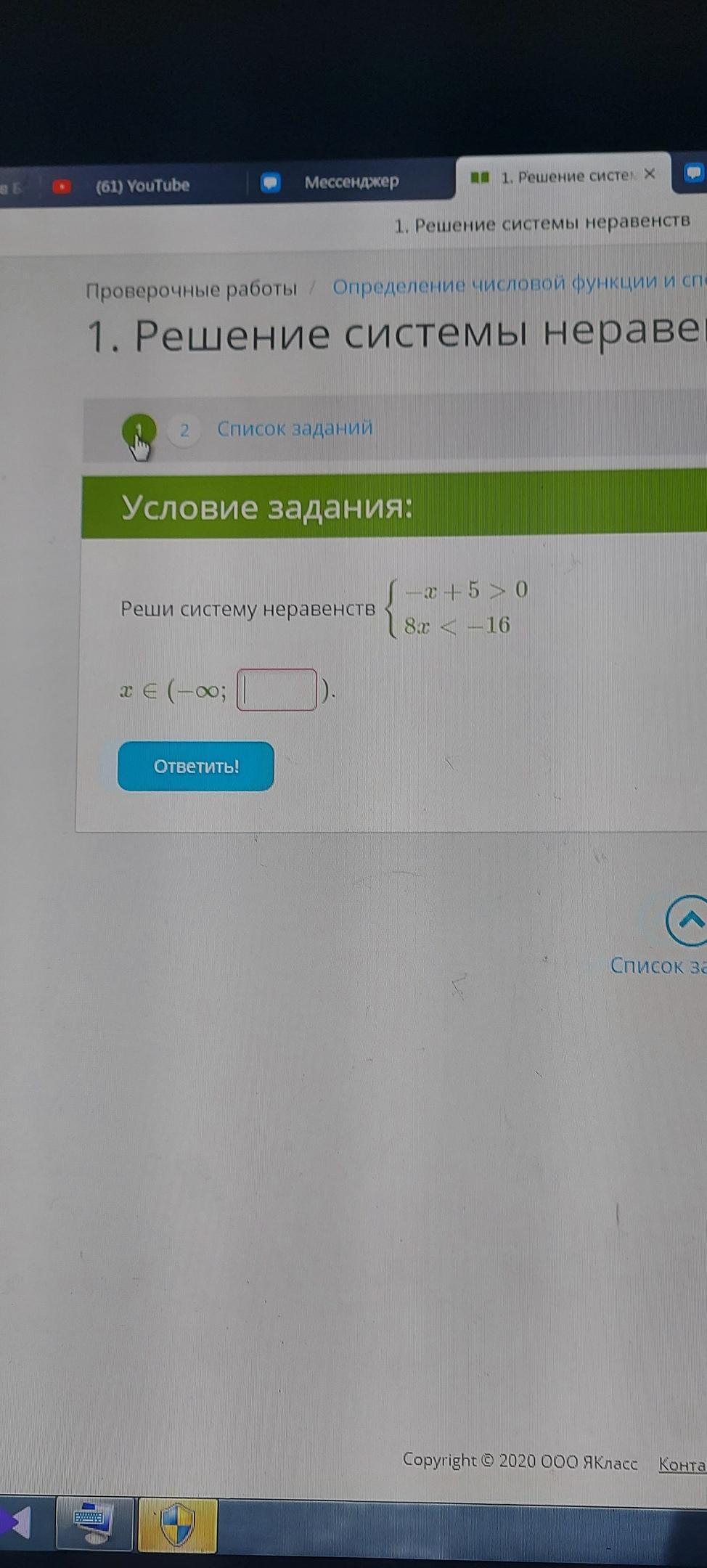 В первом задании ответ -2. Во втором задании: первый квадратик >