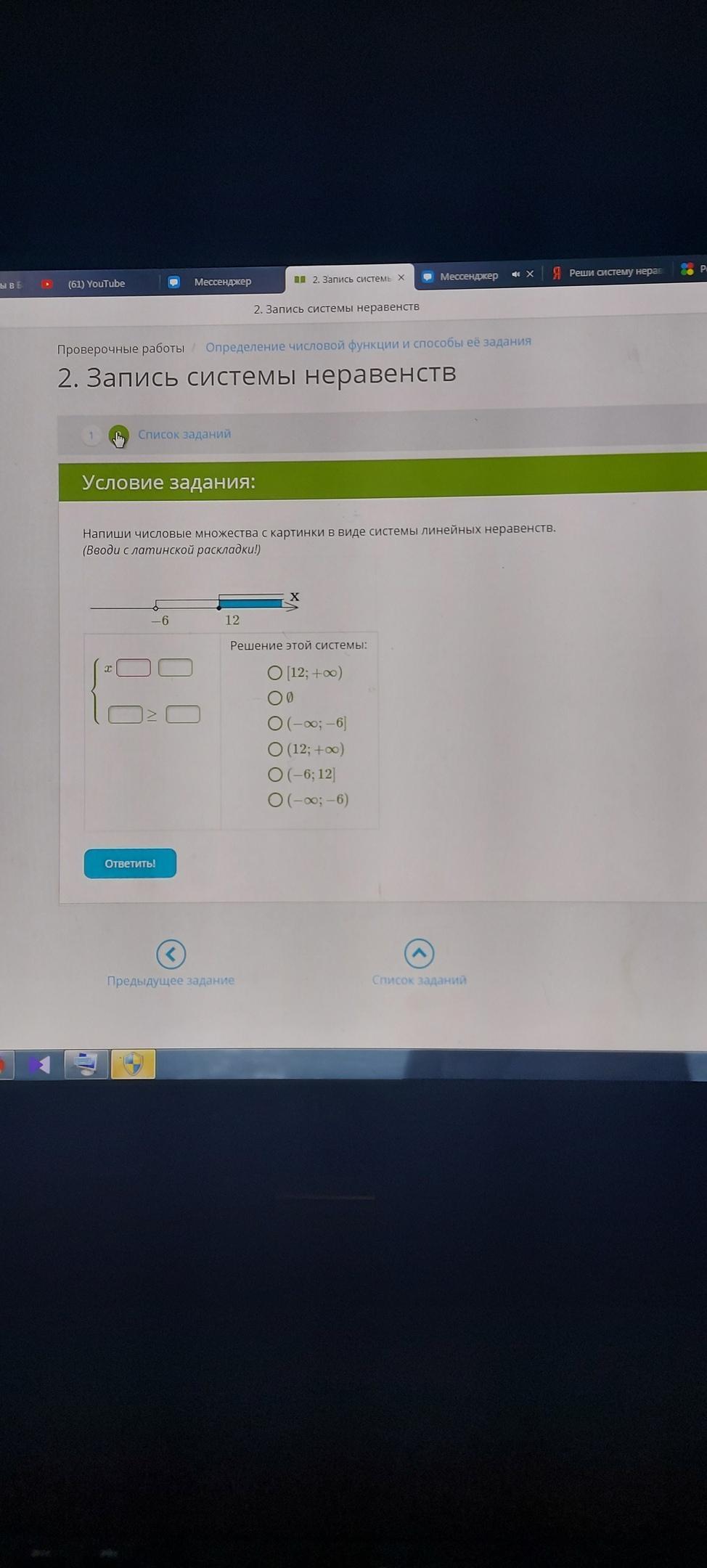 Второй квадратик -6. Третий квадратик х. Четвёртый квадратик 12. Справа выбирай [12;+.....)