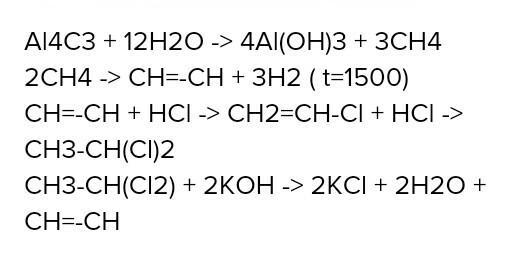 2) CaC2 => C2H2 => C2H4 => C2H4Cl2 => C2H2 => альдегид