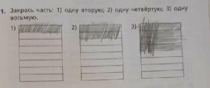 1. Закрась часть: 1) одну вторую; 2) одну четвёртую; 3) одну