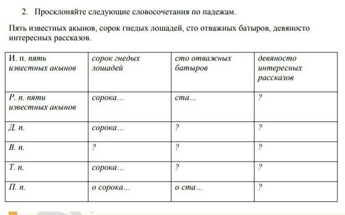 - сорока гнедых лошадей, сорока гнедым лошадям, сорок гнедых лошадей, сорока гнедыми лошадями, сорока гнедых лошадях