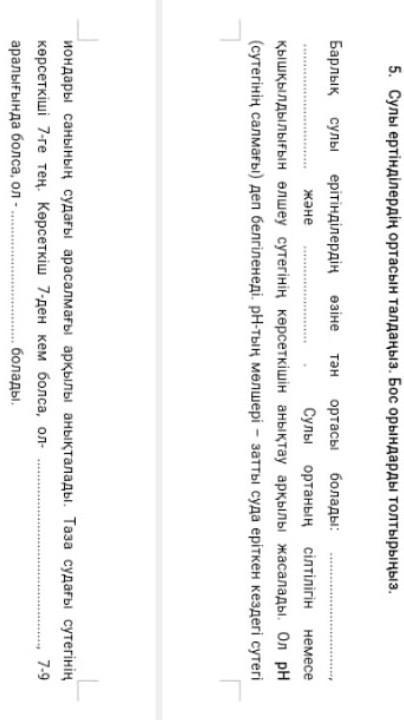 Барлық сулы ерітінділердің өзіне тән ортасы болады: бейтарап су, сiлтiлi су жане кадимги су. Сулы ортаның сілтілігін немесе қышқылдылығын өлшеу сутегінің көрсеткішін анықтау арқылы жасалады. Ол рН (сутегінің салмағы) деп белгіленеді. рН-тың мөлшері – затты суда еріткен кездегі сутегі иондары санының судағы арасалмағы арқылы анықталады. Таза судағы сутегінің көрсеткіші 7-ге тең. Көрсеткіш 7-ден кем болса, ол- кышкылдык, 7-9 аралығында болса, ол - сiлтiлiк орта болады.