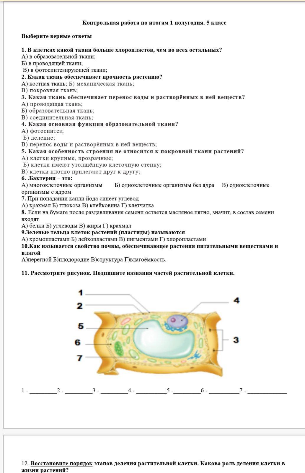 11. 1. Оболочка. 2. Целлюлоза 3.Поры 4. Ядро. 5. Вакуоль.