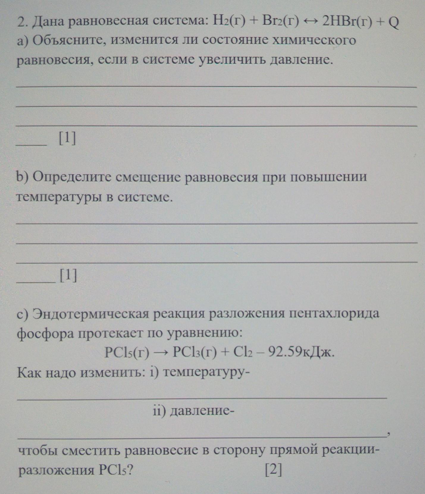 2а) не изменится, так как объемы реагирующих веществ одинаковые 2б) смещение равновесия при повышении температуры в сторону эндотермической реакции, при понижении температуры в сторону экзотермической реации 2с) необходимо повысить температуру