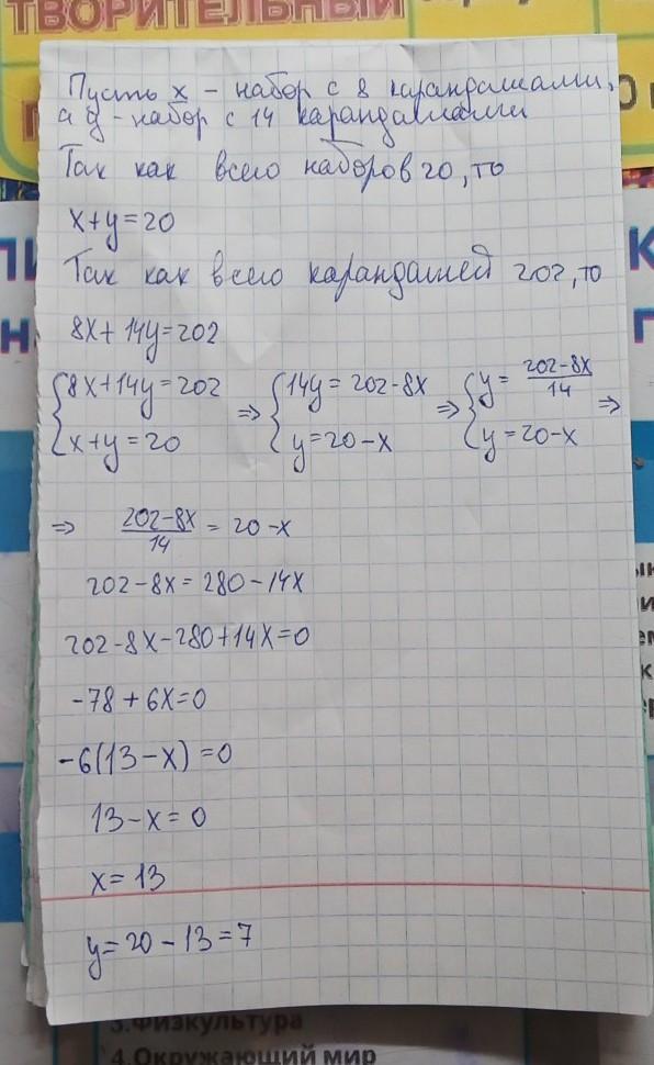 В магазине всего 20 наборов, а карандашей в них 202. Сколько наборов по 8 карандашей есть