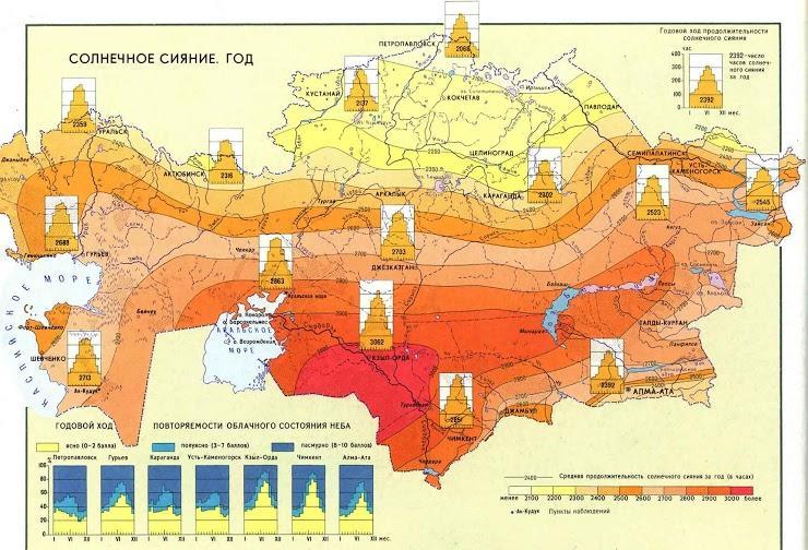 Определите области с самым низким уровнем солнечной радиации