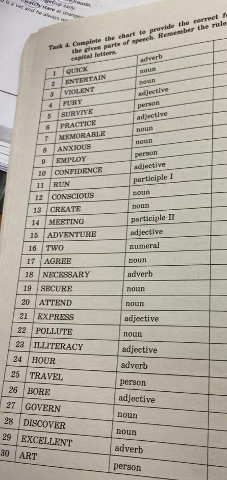 Помогите!!! По англулийскому пж task 4 complete the chart to provide the correct form of the words shown
