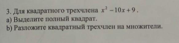 для квадратного трёхчлена x²-10x+9 a) выдели полный квадрат b)разложите квадратный трёхчлен на множители