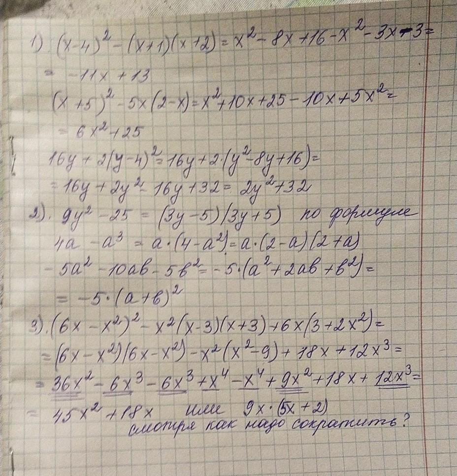3) (6x -x^2)^2 -x^2 (x – 3)(x + 3) + 6x(3 +2x^2)