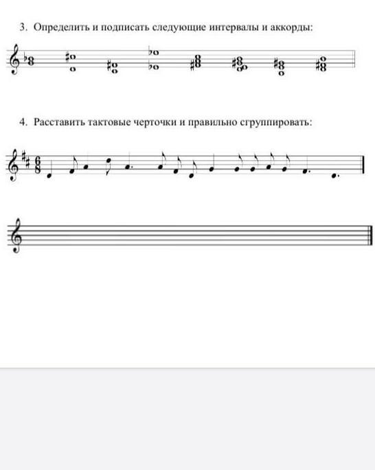 определить и подписать следующие интервалы и акорды и расставить таковые черточки и правильно сгруппировать задание пожалуйста в письменном виде